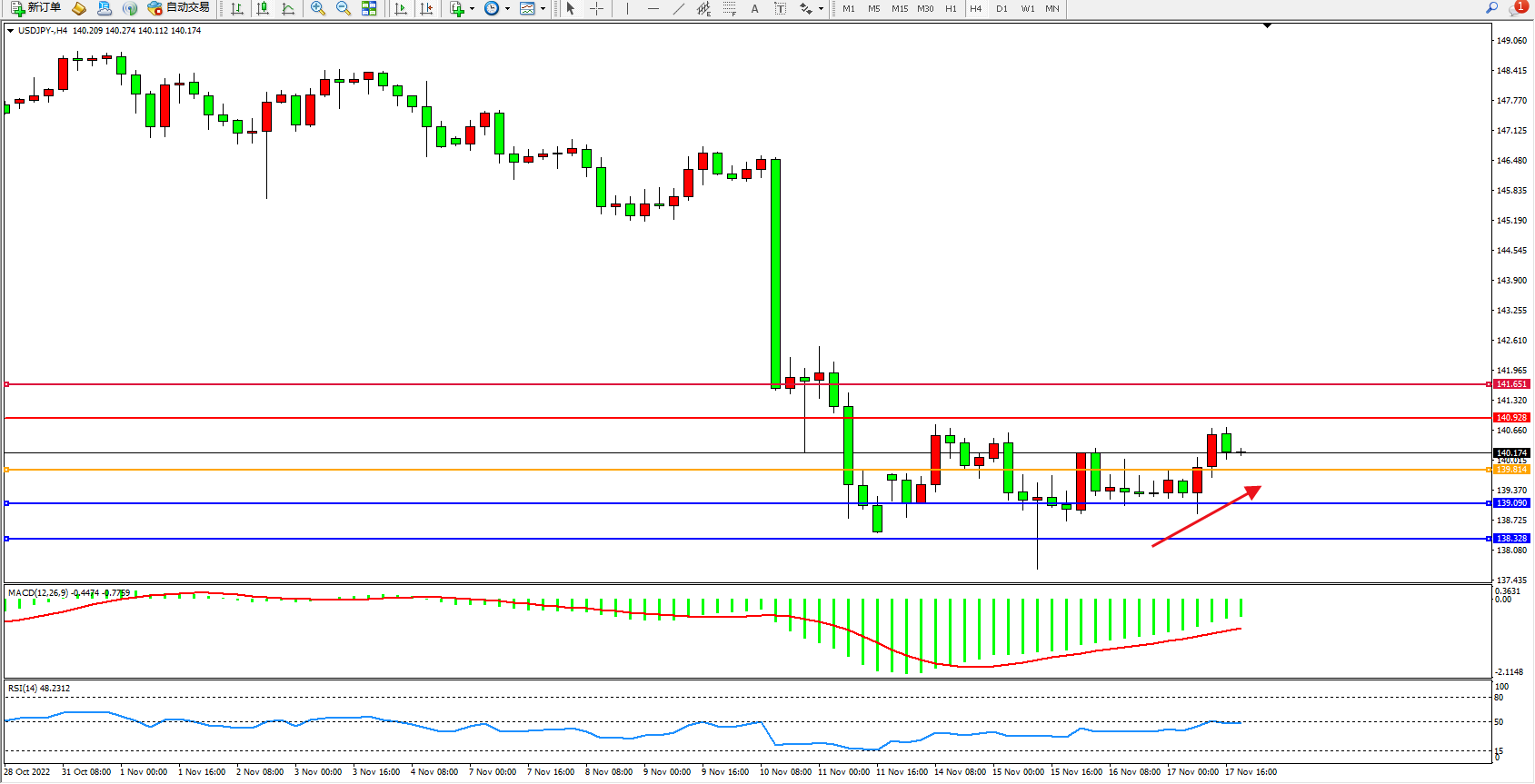 交易策略:139.814上方看涨,目标140.928、141.651
