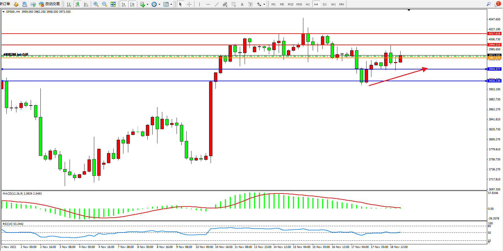 4小时图看:高位短期震荡回撤后,短期整理,多头伺机入场上移,短期看涨情绪开始涌现,MACD指标处于0轴线附近徘徊,RSI指标处于50均衡线附近弱势整理;