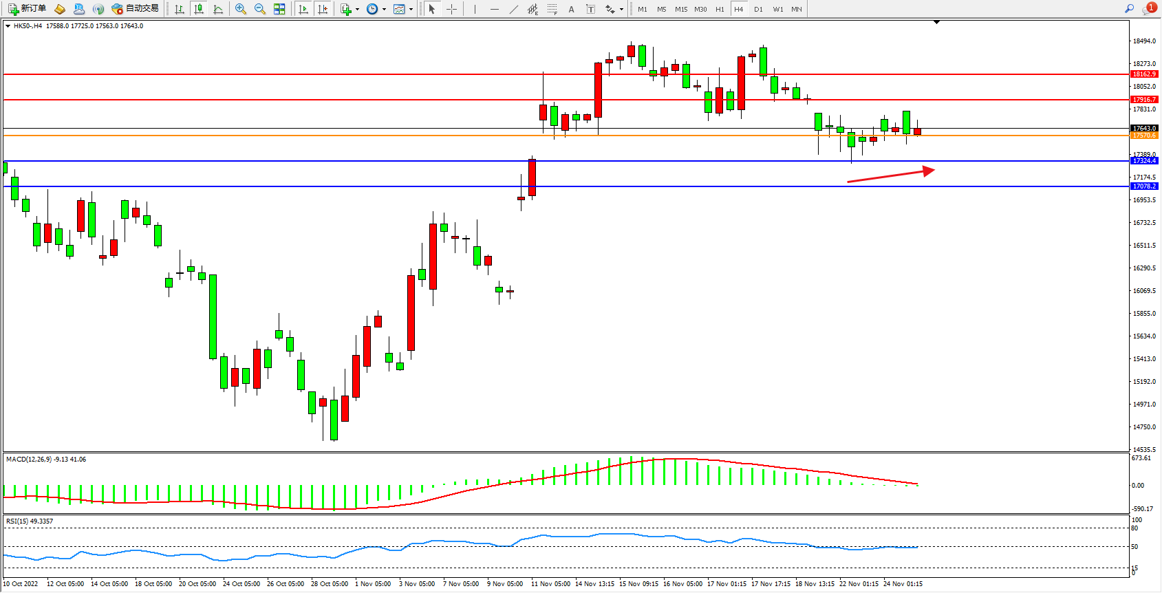 4小时图看:高位震荡回撤,开始弱势整理,市场整体处于高位徘徊,短期或纠结高位整理,MACD指标处于0轴线附近徘徊,RSI指标处于50均衡线附近整理;