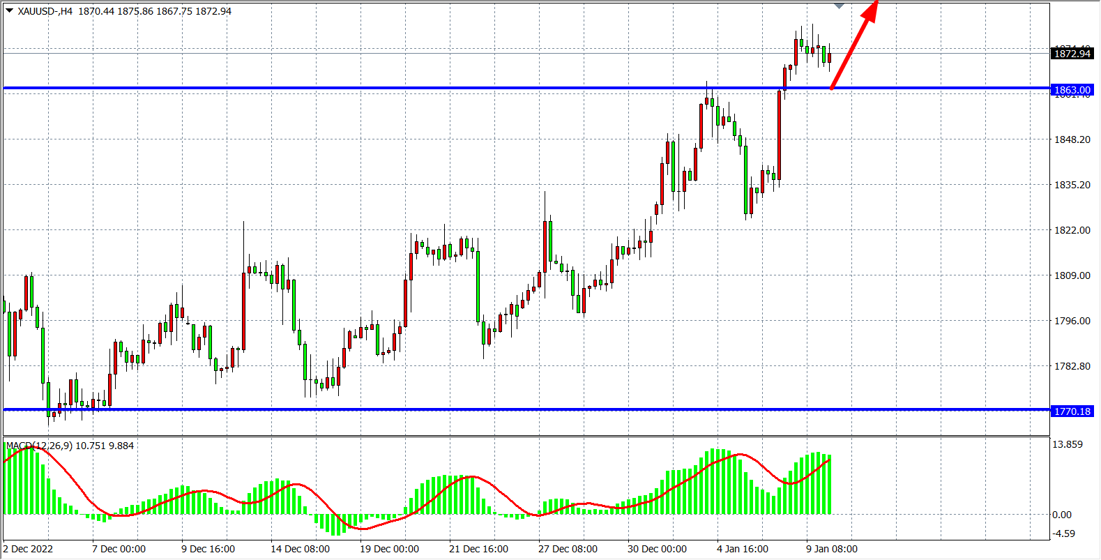 交易策略:在1863.00 之上看涨,目标1880.00 1900.00