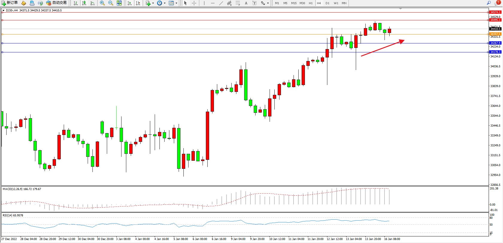 道琼斯指数1月13日(周五)收盘上涨112.64点,涨幅0.33%,报34302.61点;市场已经消化了美国经济完美软着陆的预期,并假设美国将在2023年晚些时候降息。然而,考虑到美国刚刚看到的急剧紧缩周期以及通胀的严重程度,很可能会在2023年看到更多的连锁反应,无论是在公司业绩、工资压力还是严重的全球衰退方面。因此,要警惕美元可能出现的逆转。