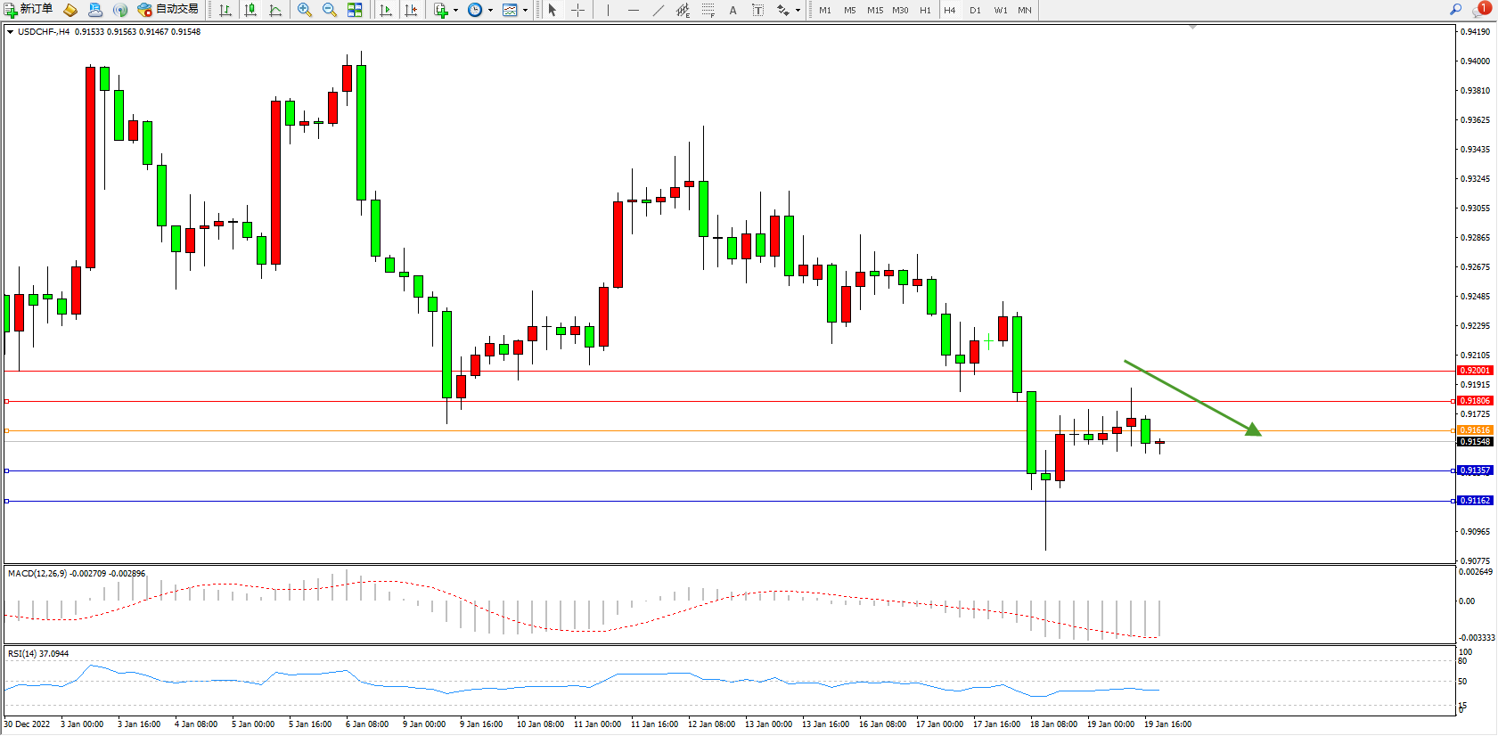 USDCHF:低位震荡 USDCHF  XAUUSD
