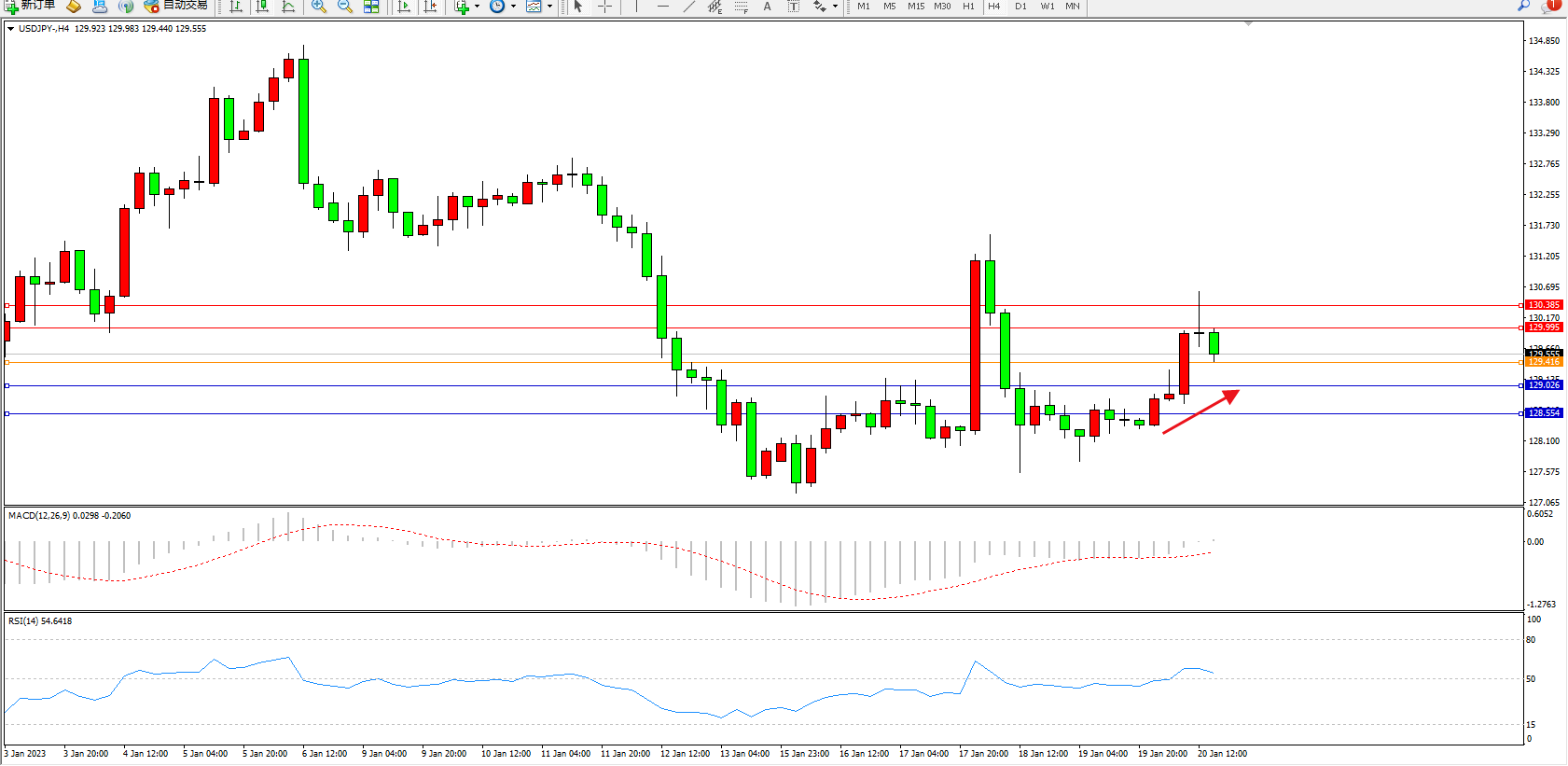 4小时图看:多头动力维持震荡上移,短期看涨动力虽有拉升,但后续动力有所欠缺,MACD指标处于空头区域低位整理上移,RSI指标处于50均衡线上侧震荡;