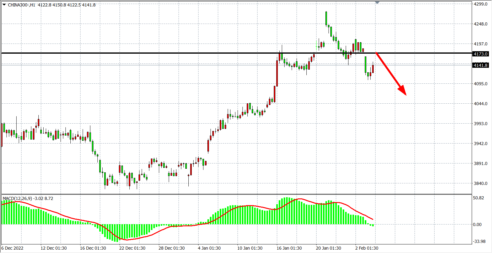 1小时图看,沪深300在高位继续回落,目前顶部形态较明显,当前阻力已下移4173附近,在该位之下继续看跌为主,下方目标4100-3950附近。