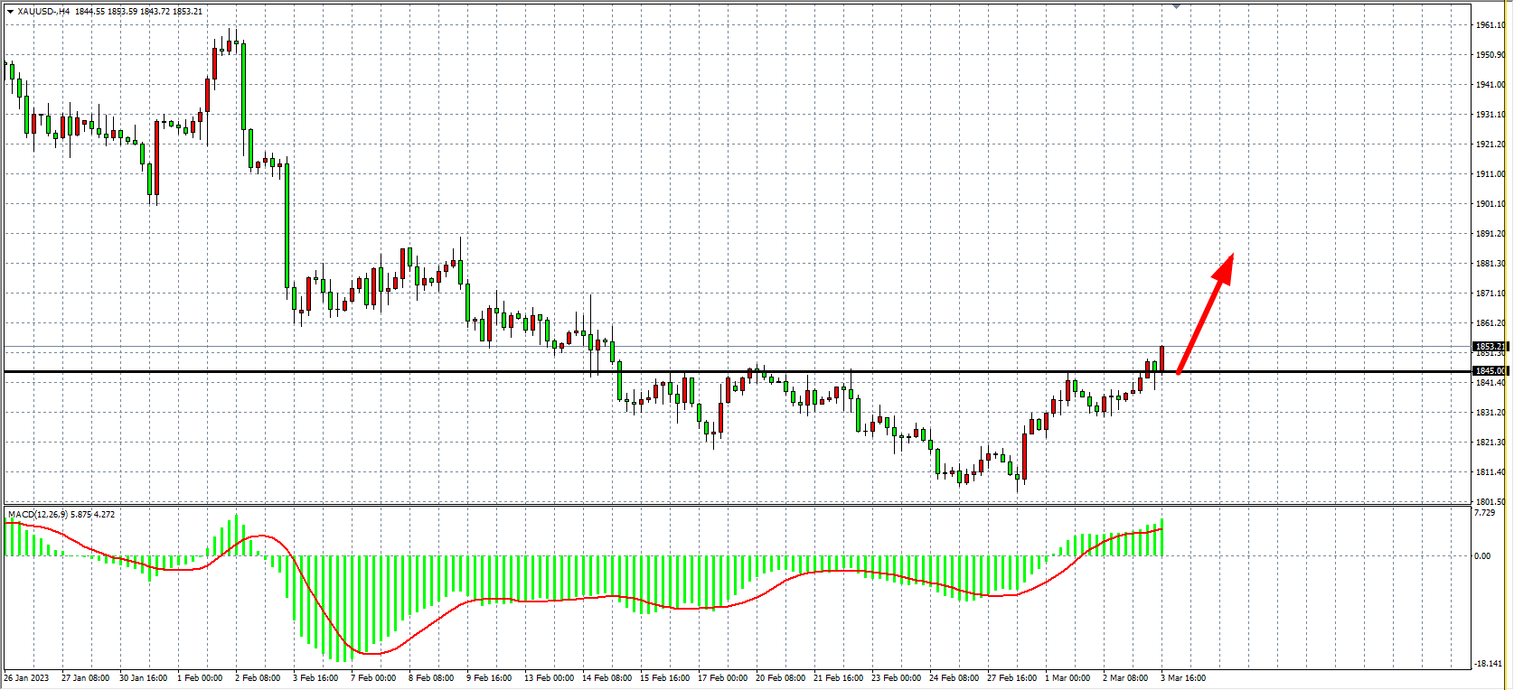 黄金:支撑上移1845