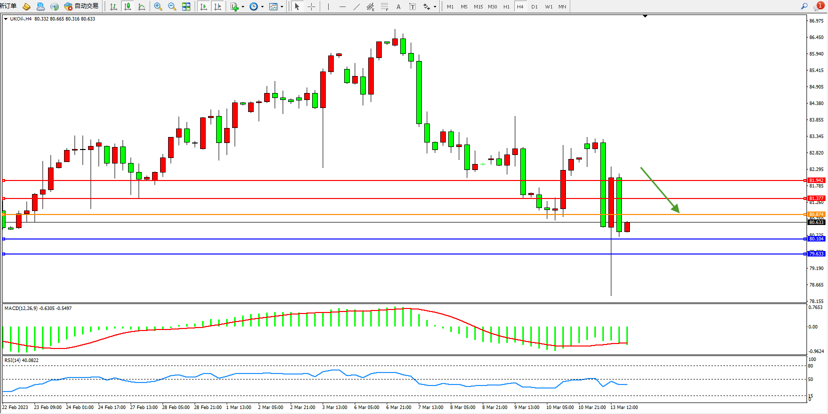 布油维持80.633附近震荡,美国原油库存高企和2月失业率回升加剧了对美联储进一步收紧货币政策的担忧,但硅谷银行和总部位于纽约的Signature Bank倒闭以及对可能蔓延的担忧导致上周末美国资产遭到抛售,这也给美元带来了下行压力,从而支撑油价。