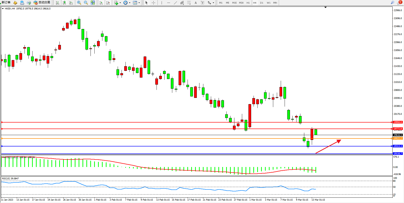 香港恒生指数3月13日(周一)收盘上涨376.05点,涨幅1.95%,报19695.97点;硅谷银行事件影响趋弱,李强总理讲话提振了市场信心,人民币更是一度狂飙超500点,全球风险市场迎来大反弹行情。港股恒生科技指数一度拉升涨4.6%,最终收涨2.89%,恒指、国指分别涨1.95%和2.24%,三者均止步连跌行情。南下资金净流入25.57亿港元,大市成交额为1451亿港元。