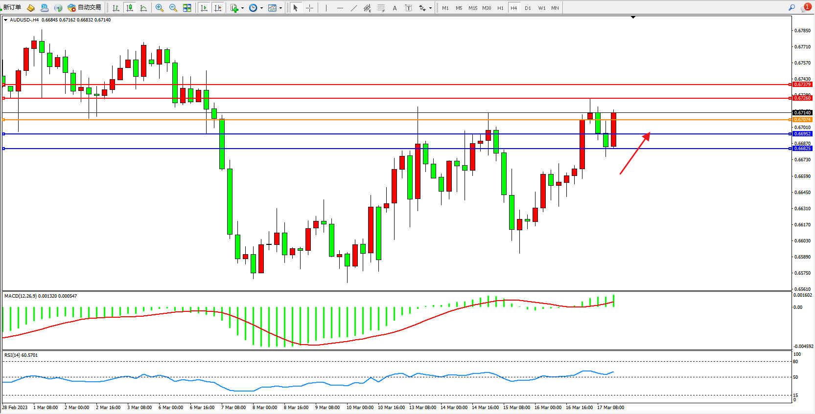 交易策略:0.67074上方看涨,目标0.67260  0.67379