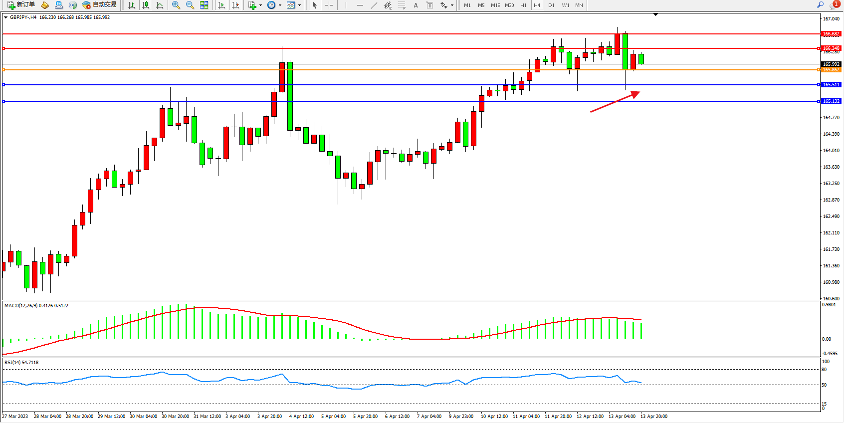 4小时图看:高位短期震荡,市场多头动力开始有减弱迹象,短期回撤,但上行趋势依旧,处于高位宽幅震荡中,MACD指标处于多头区域整理,RSI指标处于50均衡线上側徘徊;
