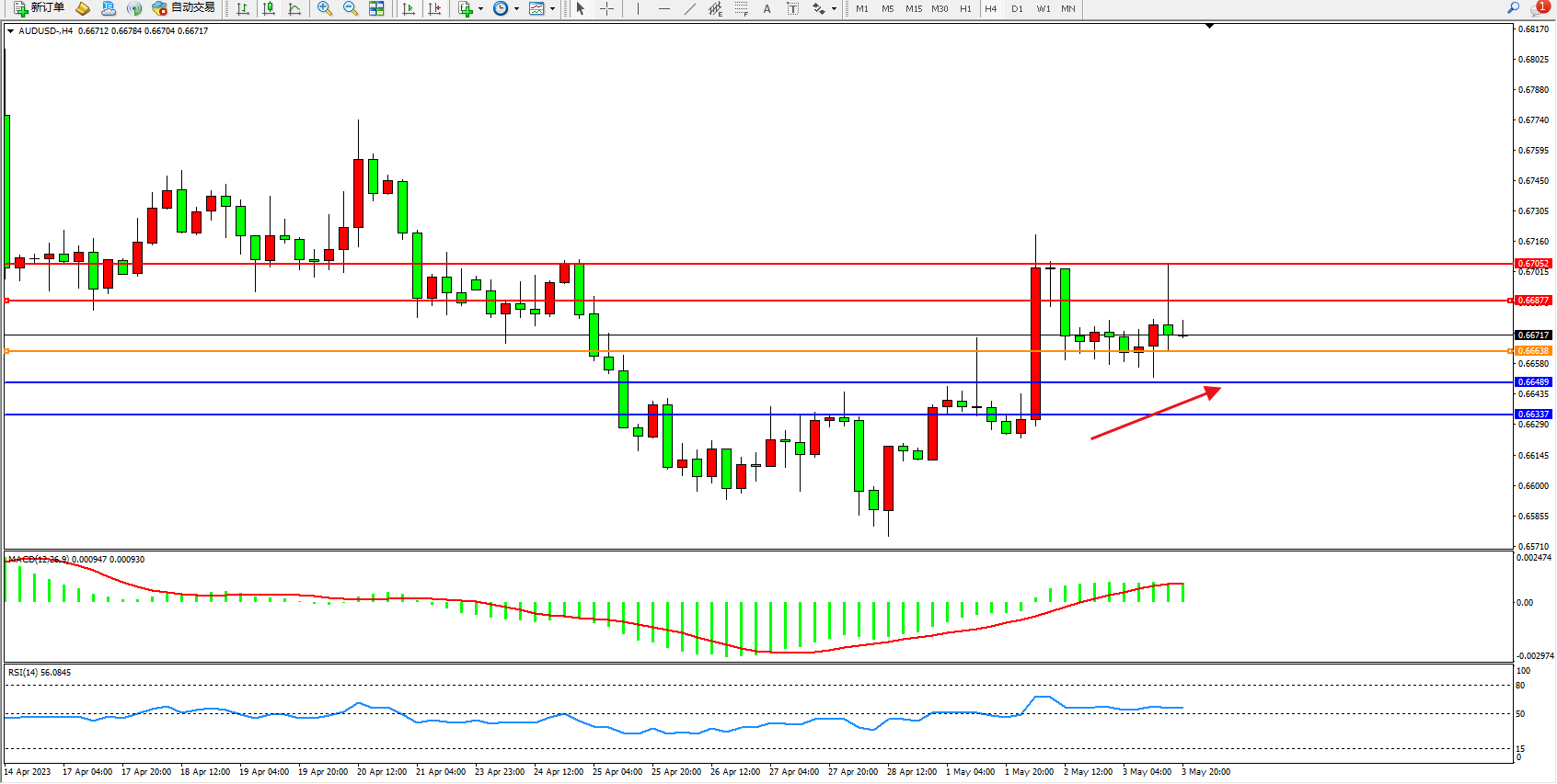 交易策略:0.66638上方看涨,目标0.66877 0.67052