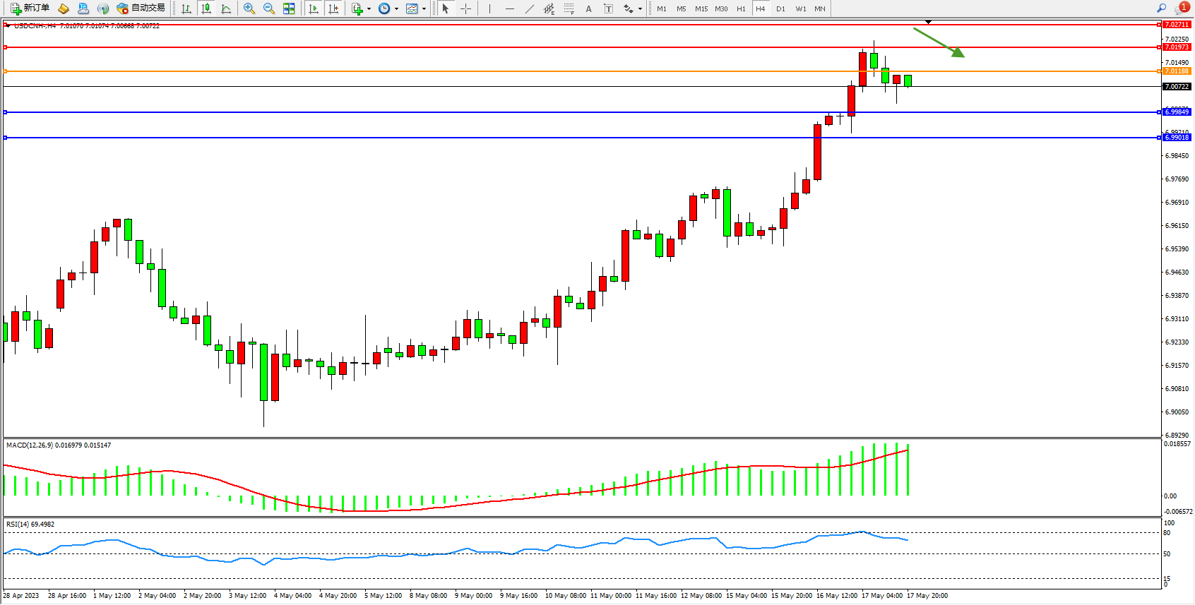 备选策略:7.01188上方看涨,目标7.01973  7.02711