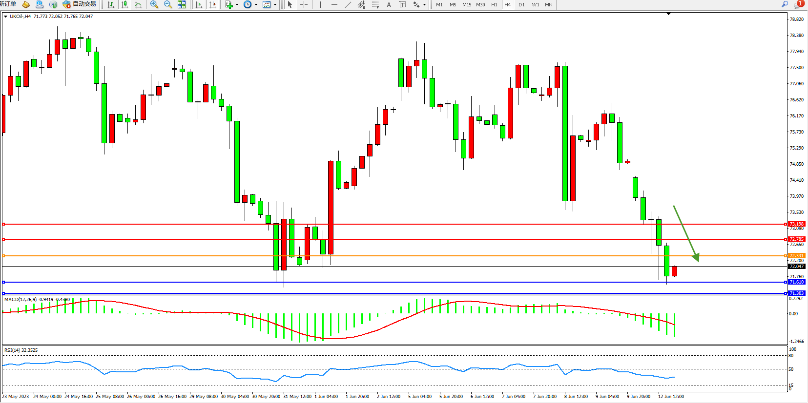 布油维持72.047附近震荡,随着中国和印度需求进一步回升,石油市场将在今年下半年收紧。美国和欧洲的高利率和经济疲软将至少在今年剩余时间里拖累油价。