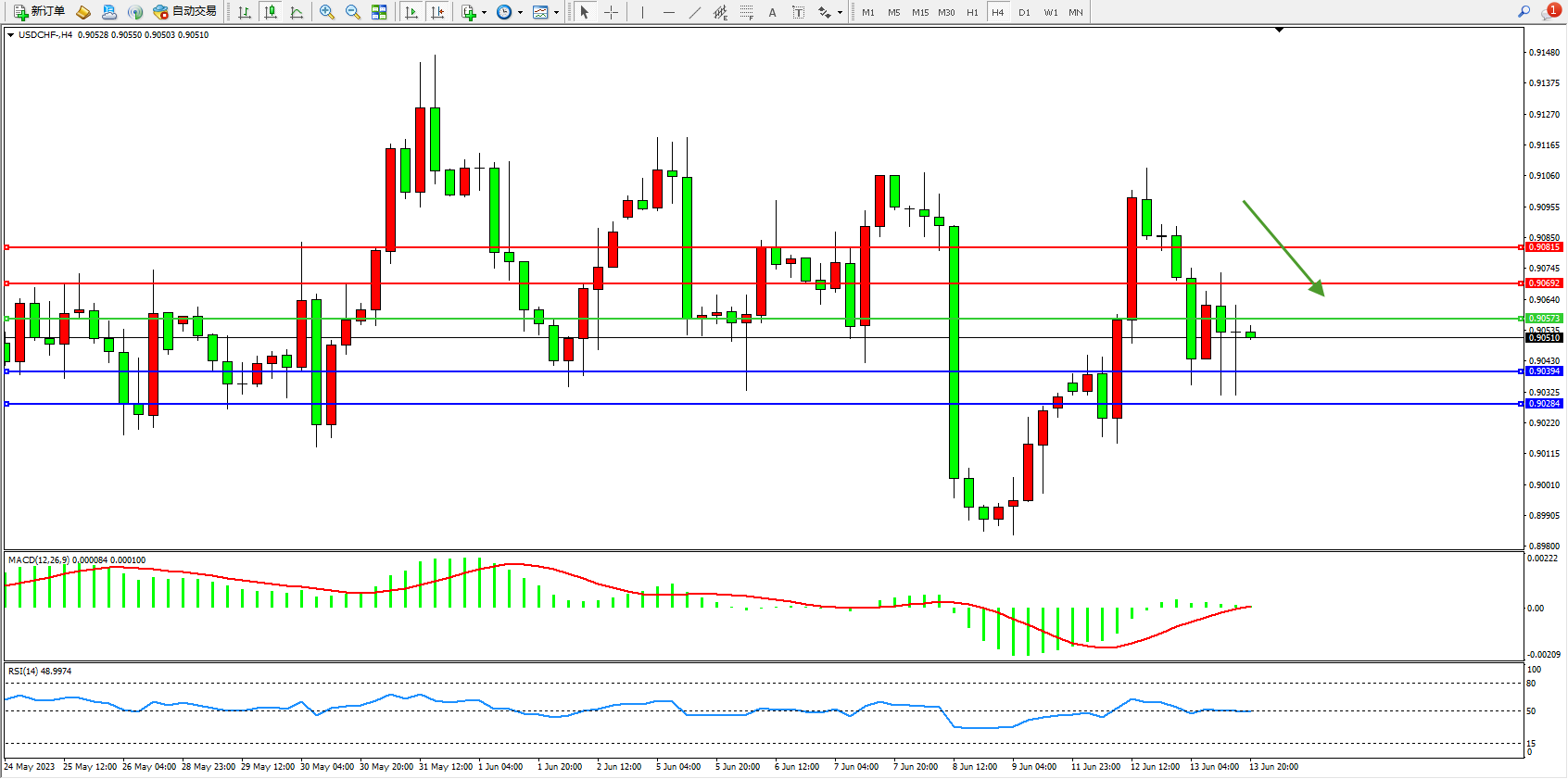 交易策略:0.90573下方看跌,目标0.90394  0.90284