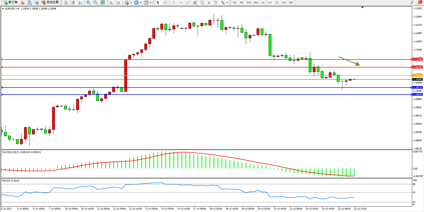 备选策略:1.10674上方看涨,目标1.10949  1.11208