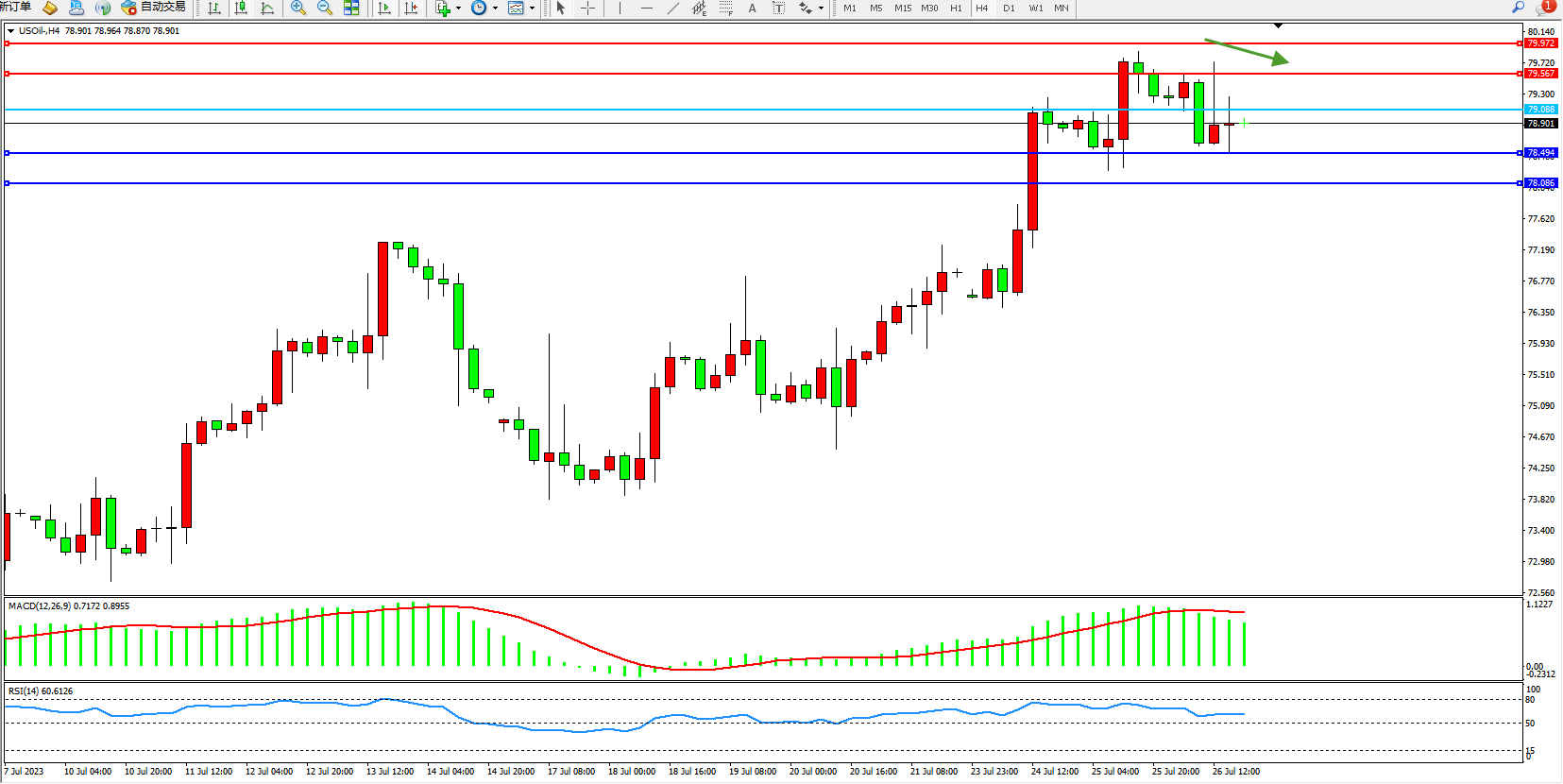 原油USOil——4小时K线图显示: