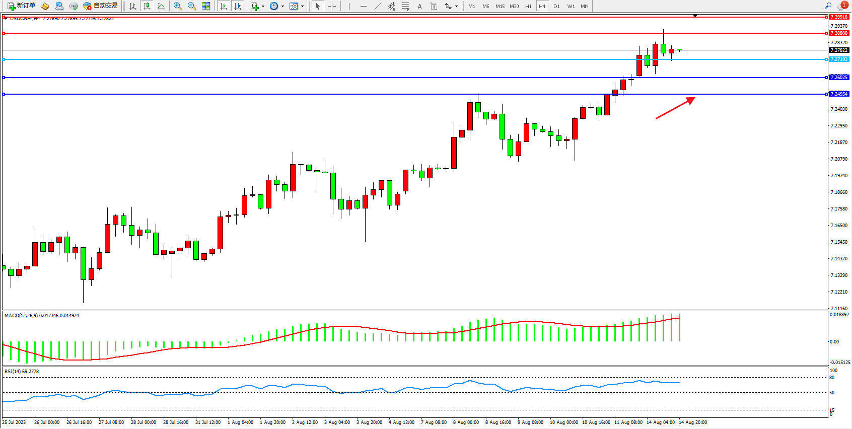 交易策略:7.27193上方看涨,目标7.28880  7.29918