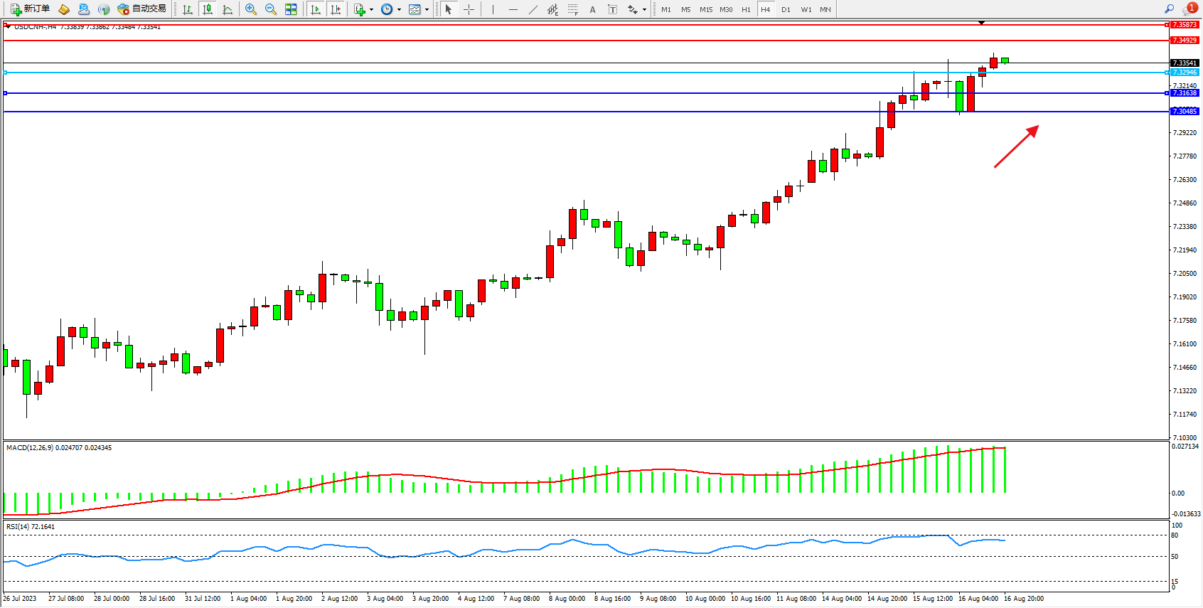 备选策略:7.32946下方看跌,目标1.31638  7.30485