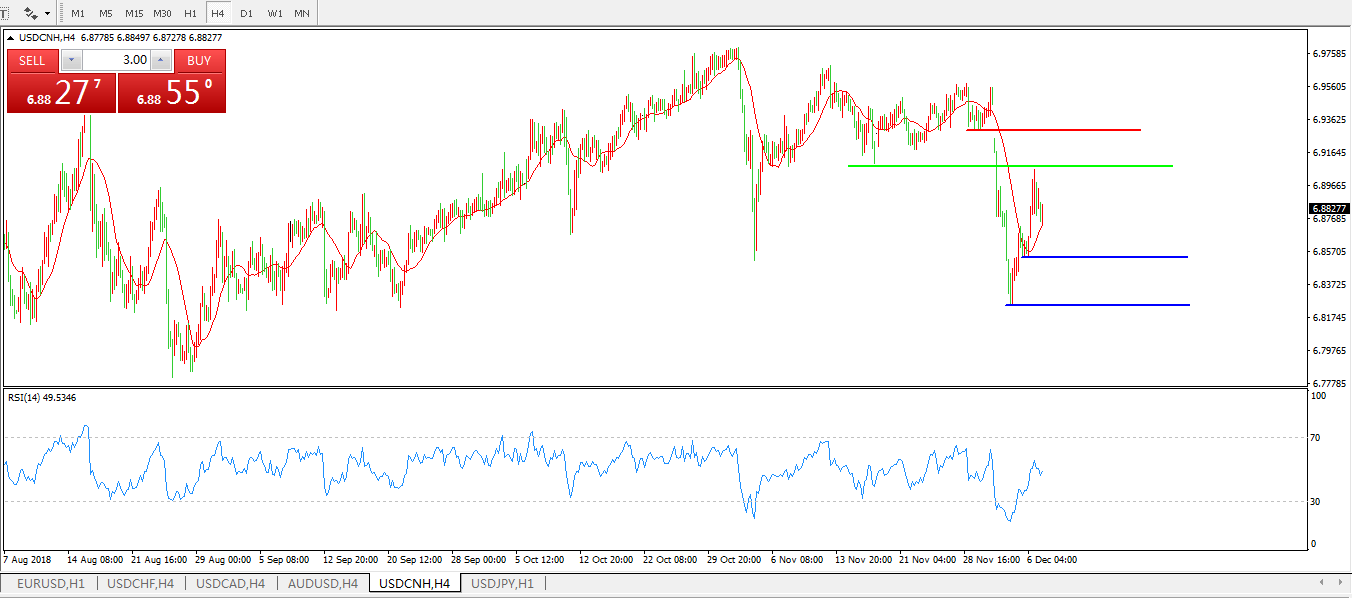 交易策略: 在6.9100之下,看跌,目标价位为6.8245,然后为 6.8242 。