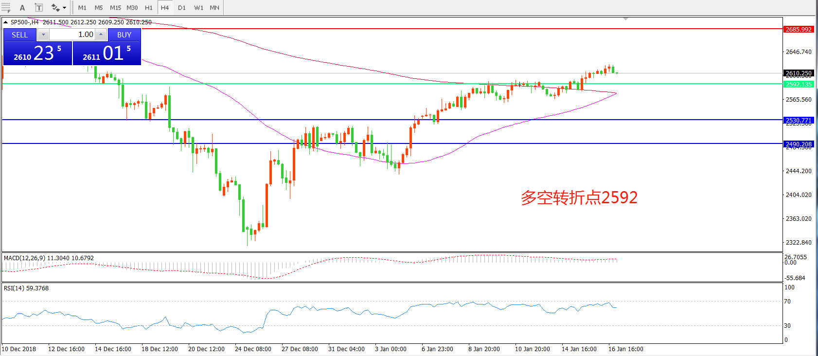 美国政府部分关门进入26天。特朗普政府周二呼吁近5万联邦雇员复工,以降低联邦政府“部分”关门的影响。高盛、美国银行公布超预期财报,银行股大涨,带动美股全线走高。标普收涨5.80点,涨幅0.22%,报2616.10点