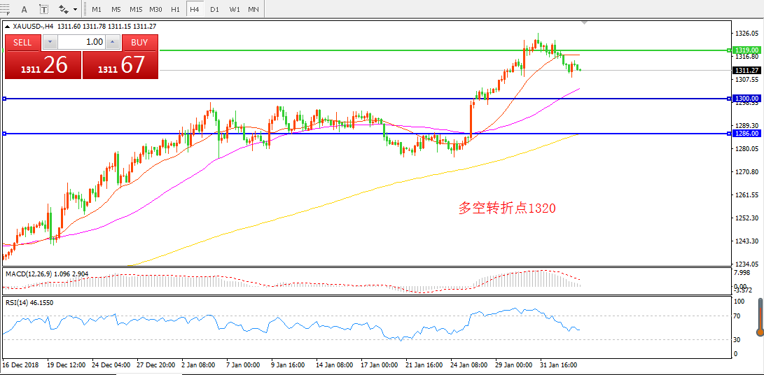 交易策略:在1320.00之下看跌,目标1300.00 1280.00