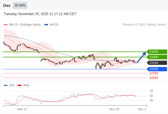 在 22940 之上,看涨,目标价位为 23400 ,然后为 23600 。