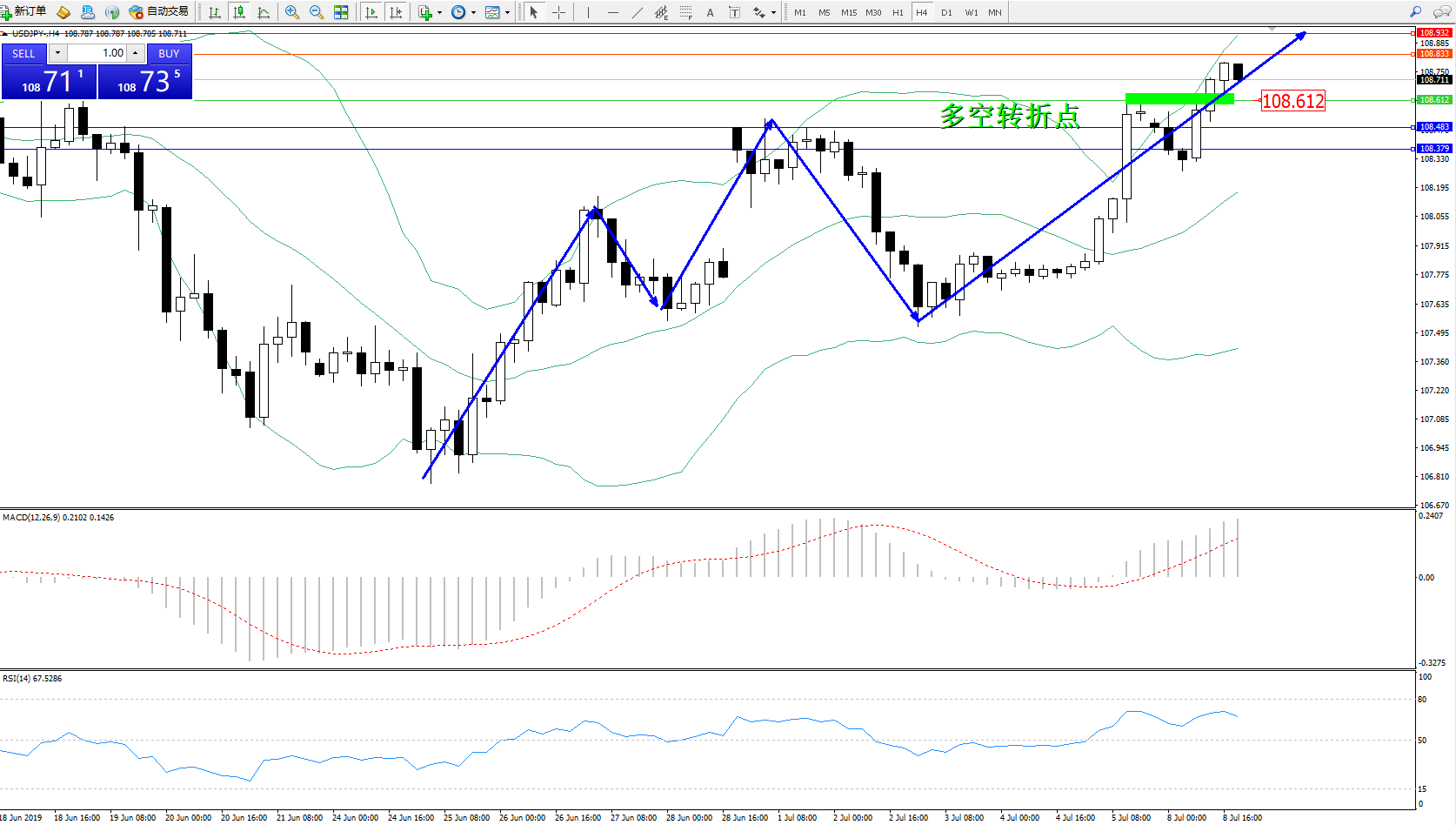 美元兑日元探底回升至108.6附近,重心上移,受益于大好的非农令美联储大幅降息预期减弱,但中东局势再度恶化,日元前景仍被看好,目前鉴于美联储预计会在7月和12月降息,美日利差将会收窄,美元兑日元到2020年年中将跌至104