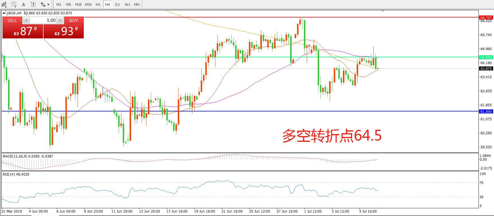 交易策略:在64.50之上看涨,目标66.70   70.00