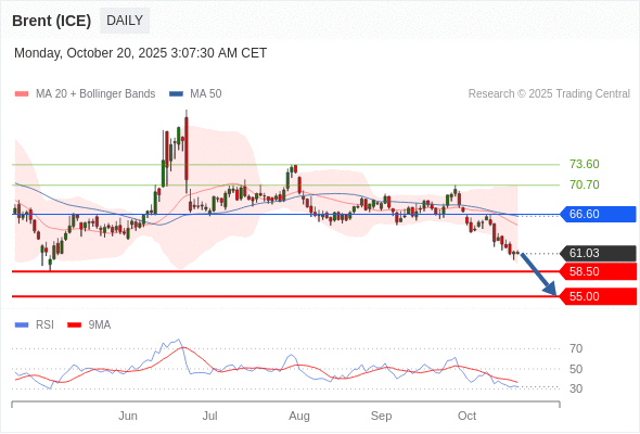 在 66.60 之下,看跌,目标价位为 58.50 ,然后为 55.00 。