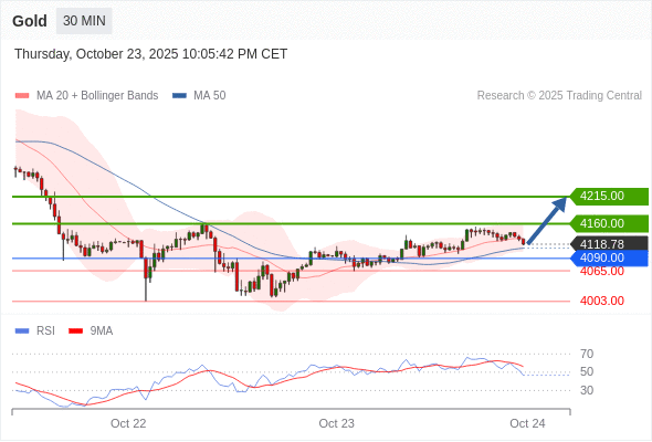 在 4090.00 之上,看涨,目标价位为 4160.00 ,然后为 4215.00 。