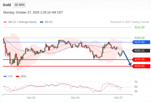 交易策略: 在 4137.00 之下,看跌,目标价位为 4045.00 ,然后为 4010.00 。