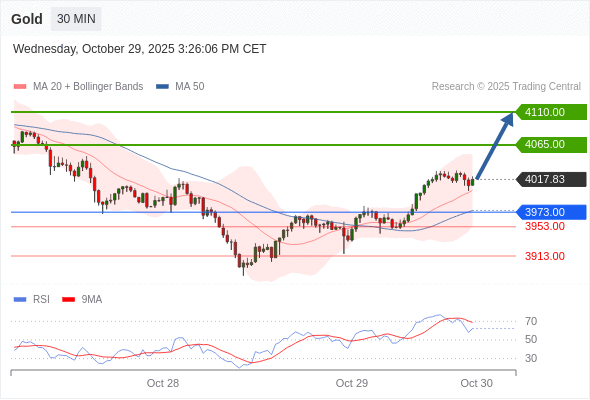 在 3953.00 之上,看涨,目标价位为 4065.00 ,然后为 4110.00 。