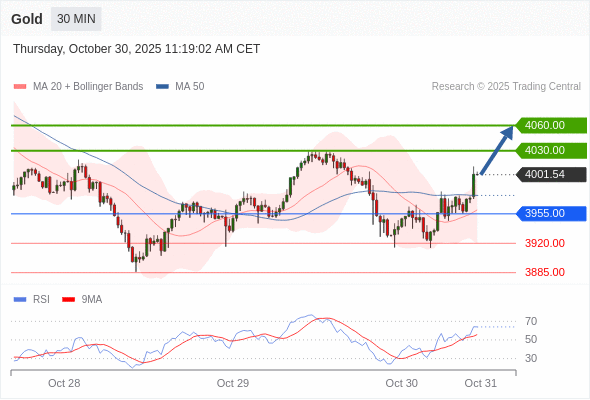 在 3955.00 之上,看涨,目标价位为 4030.00 ,然后为 4060.00 。