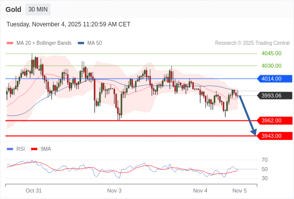 在 4014.00 之下,看跌,目标价位为 3962.00 ,然后为 3943.00 。