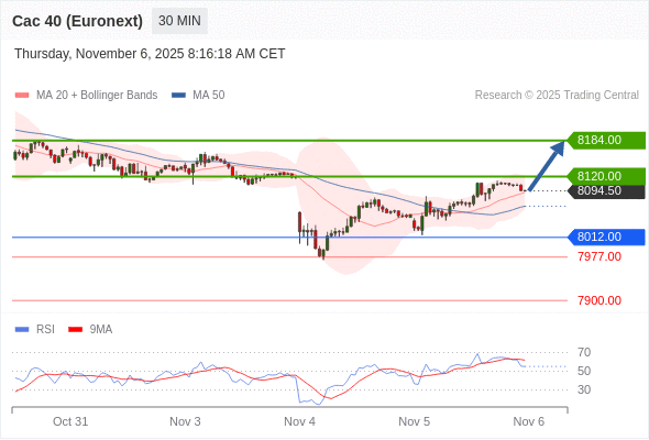 法国CAC指数期货 (Euronext) (X5) 当日内: 期待8120.00。