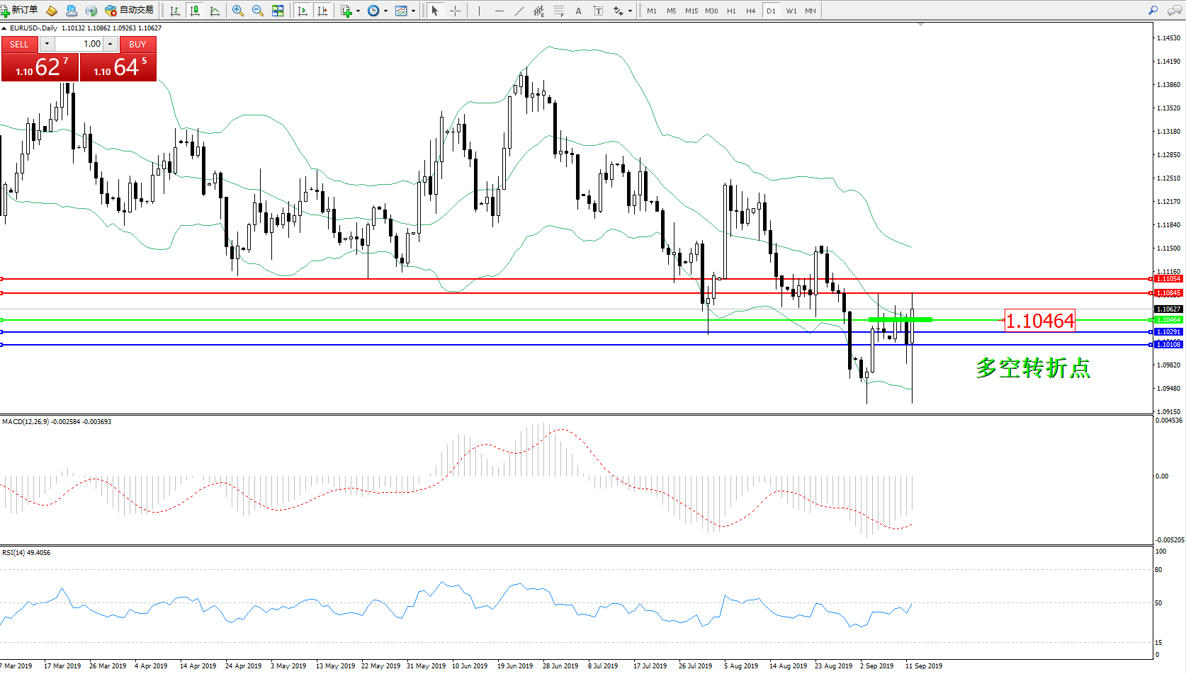 交易策略:1.10464上方看涨,目标1.10845、1.11054