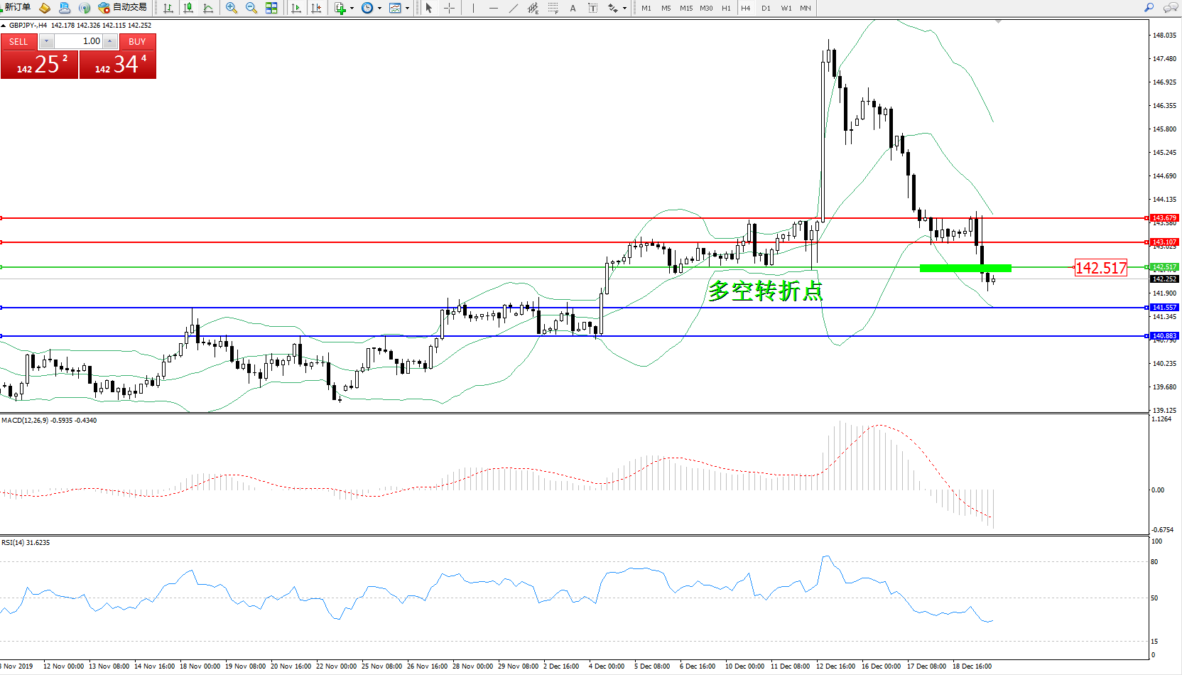 交易策略:142.517下方看跌,目标141.557、140.883