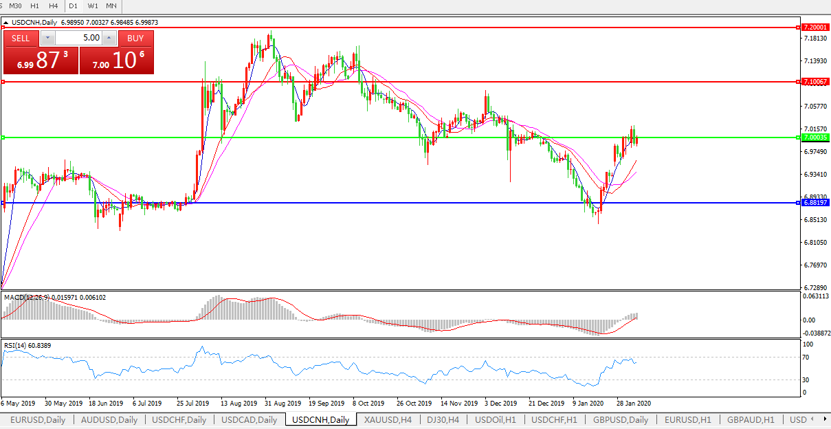 交易策略: 在7.0000之上,看涨,目标价位为7.1000,然后为7.2000。