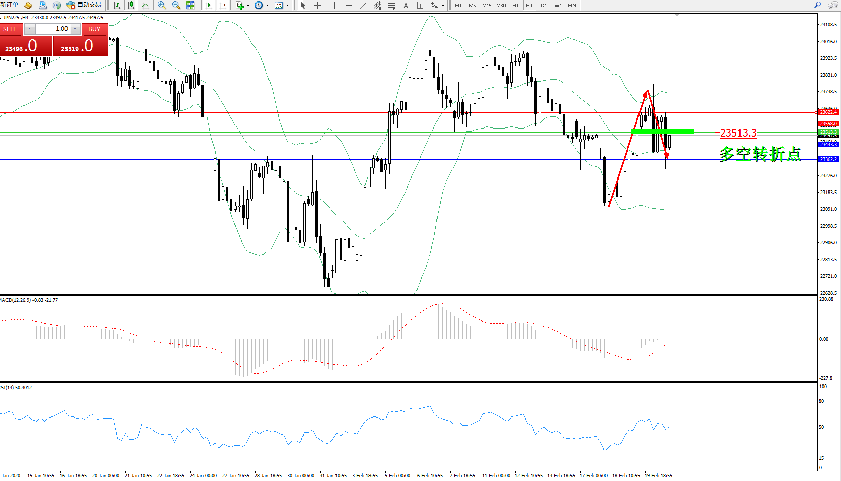 日经225指数2月20日(周四)收盘上涨84.30点,涨幅0.36%,报23485.00点。在全球风险情绪转好之际,股市的积极走势,因为日本本身经济前景出现不确定,这导致日本投资者大量涌入美债进行避险。且面临亚洲公共卫生安全事件的冲击。因市场预计日本方面此后可能采取非常措施应对公共卫生风险。由于美日央行政策差异可能进一步拉大,美联储官员近期都明确表示对美国经济抱有乐观的预期。