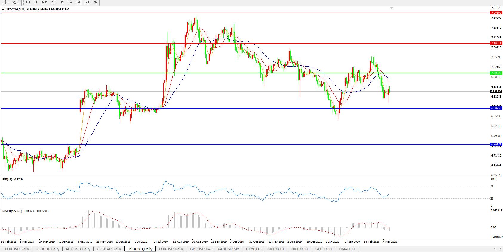 交易策略: 在7.0000之下,看跌,目标价位为6.8820,然后为6.7600。