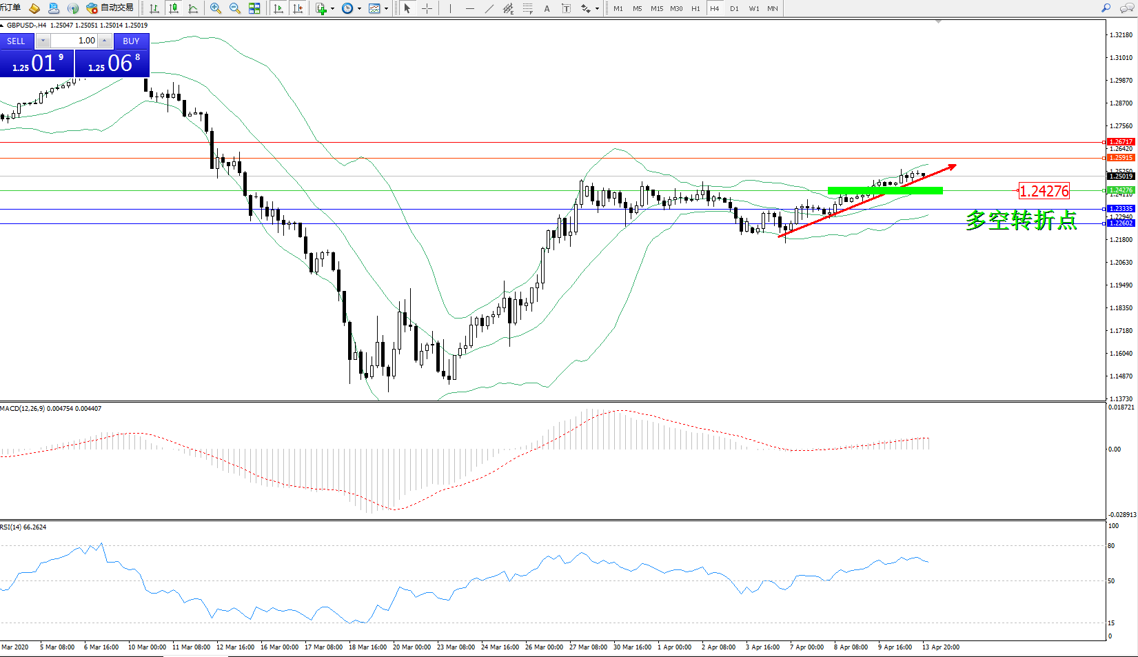 交易策略:1.24276上方看涨,目标1.25915、1.26717