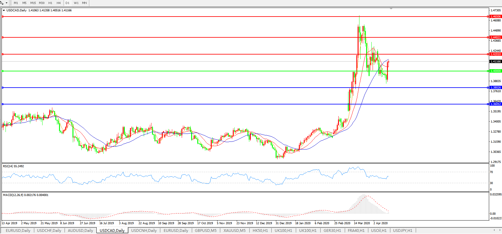 交易策略: 在1.4000之上,看涨,目标价位为1.4200、1.4400