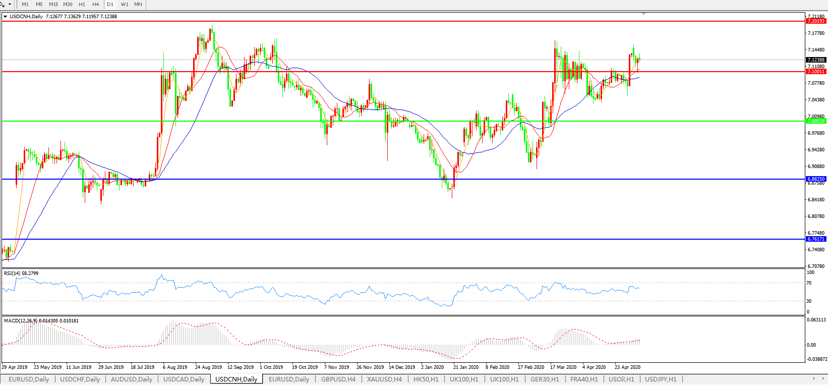 美元兑人民币USDCNH    日线图: