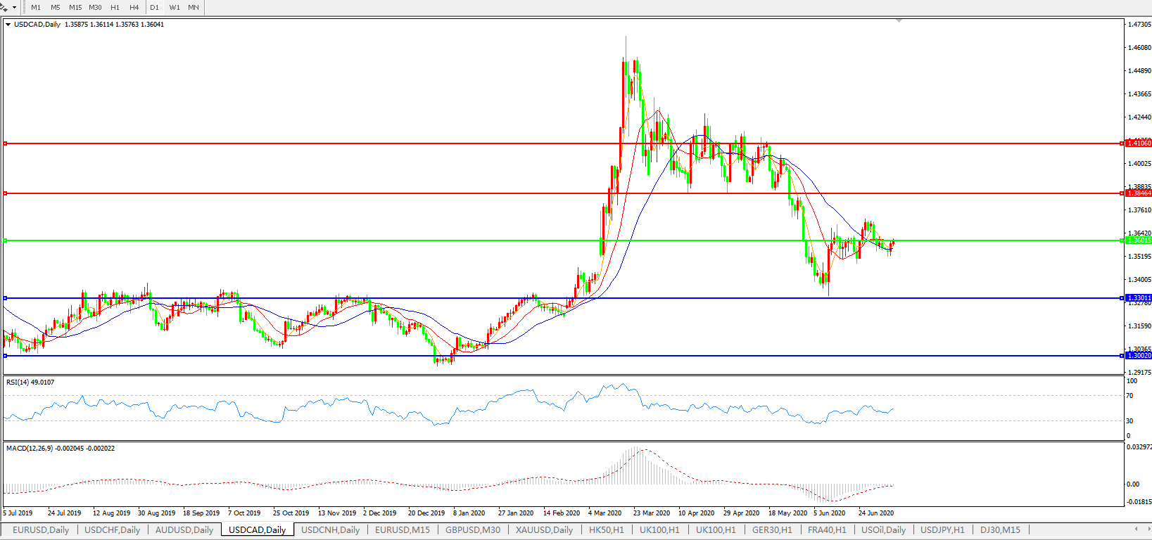 备选策略:在1.3600之下,看跌,目标价位为1.3300、1.3000