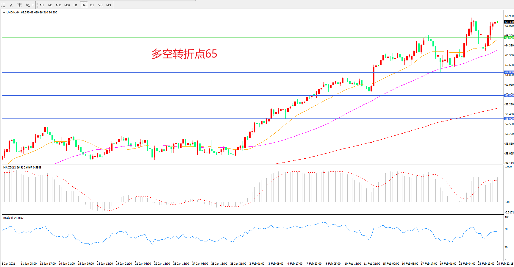交易策略: 在65.00之上看涨,目标68.00 72.00