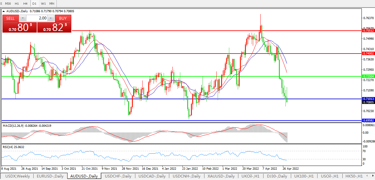 交易策略:0.7250下方看跌,目标0.7100、0.6950