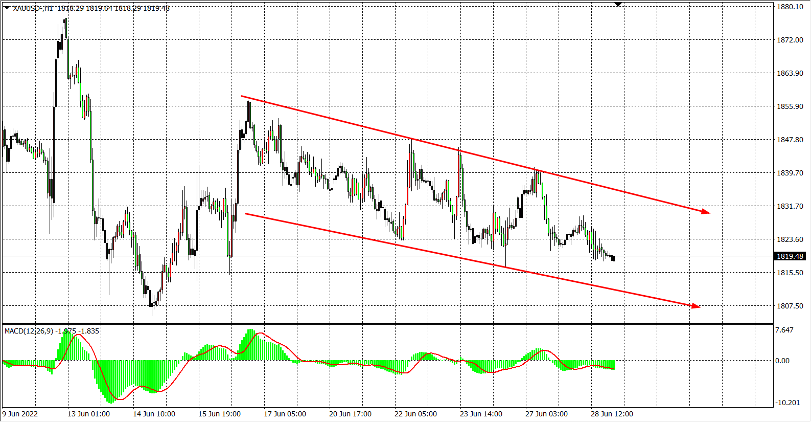 交易策略:在1830.00之下看跌,目标1810.00          1800.00