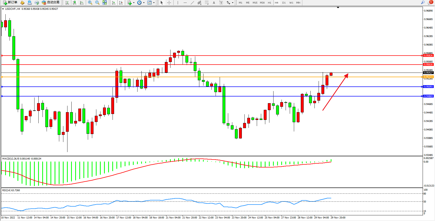 美元兑瑞郎维持0.95427附近震荡,瑞士第三季度GDP年率 0.5%,预期1.00%,前值2.80%。与2022年第二季度相比增长0.5%,同比增长0.5%,低于市场预期。