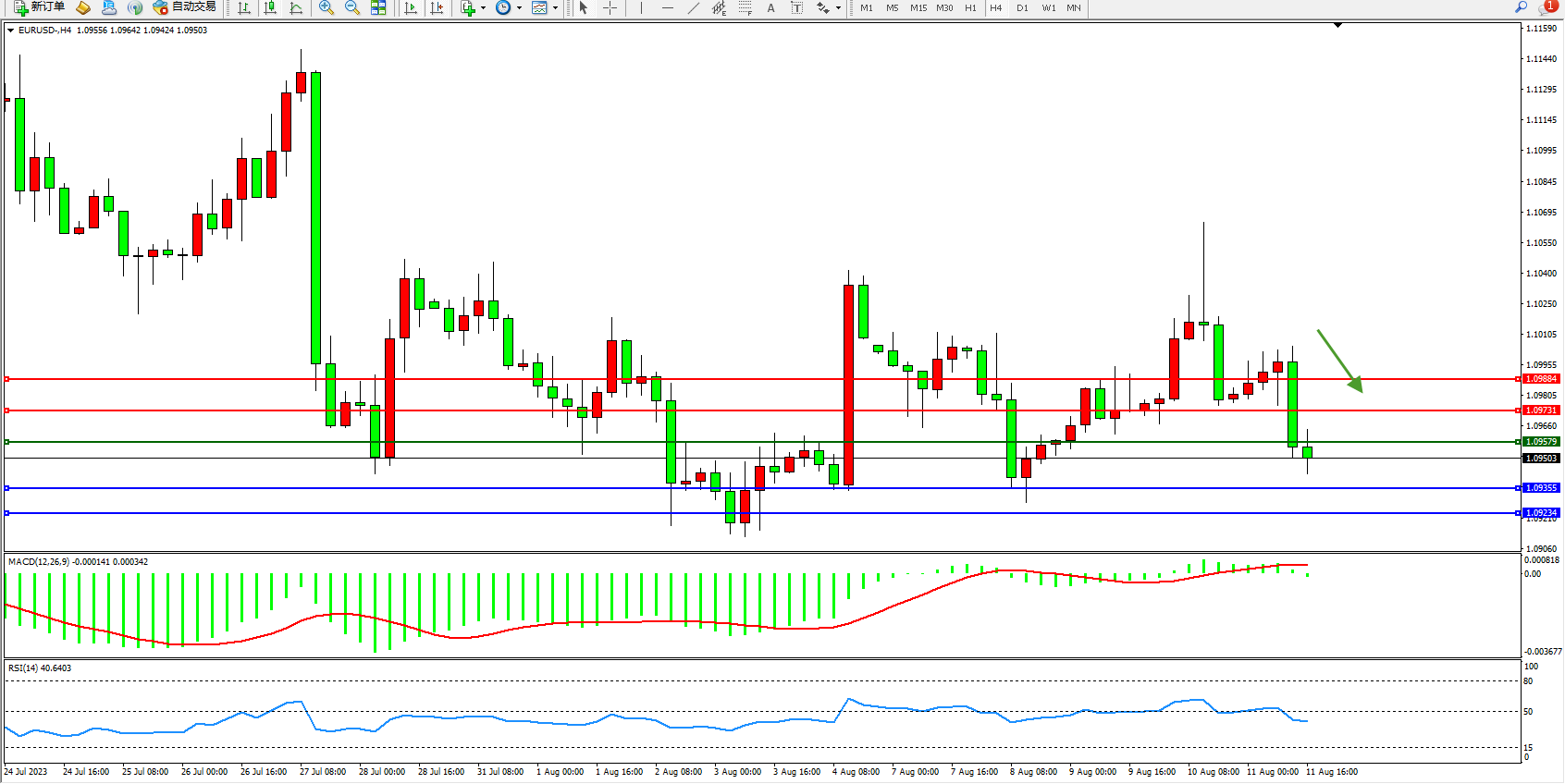 欧元兑美元维持1.09503附近震荡,投资者仍预计欧洲央行面临理事会内部关于夏季过后是否继续采取紧缩措施的分歧。欧元区经济前景不如美国,欧元很难重现强势。